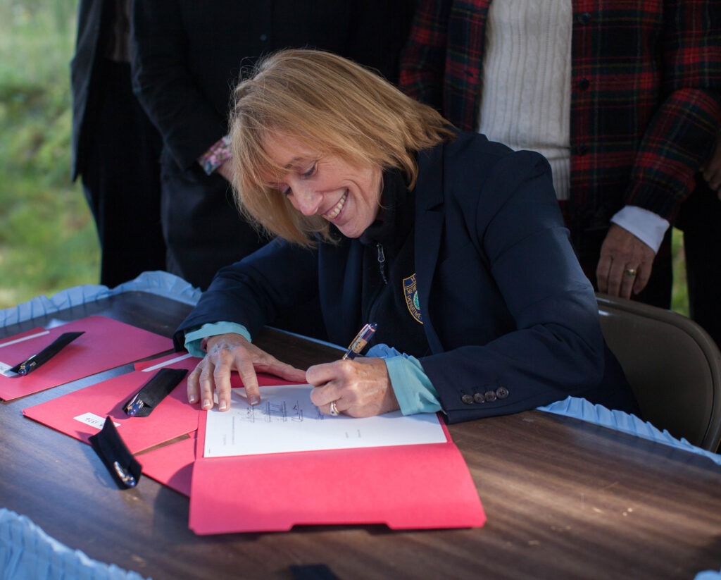 Gov. Maggie Hassan signs SB 325 at the ceremonial bill signing held Friday afternoon in Randolph, New Hampshire. MEG BROWN / MEGABUG PHOTOGRAPHY PHOTO